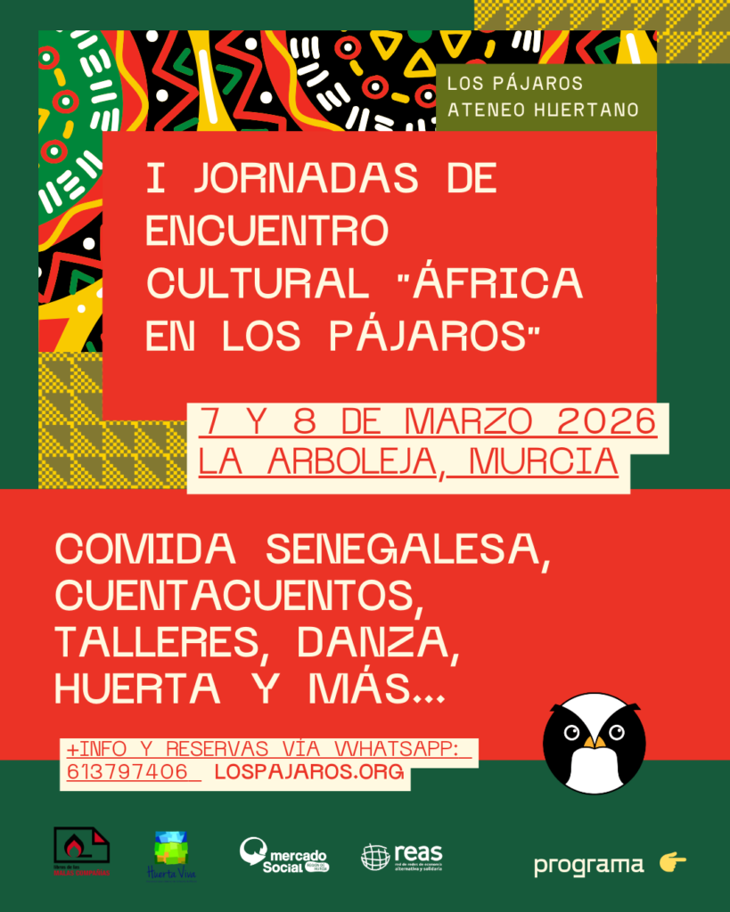 Los próximos 7 y 8 de marzo de 2026, os invitamos a disfrutar de un fin de semana único en Los Pájaros Ateneo Huertano (La Arboleja, Murcia). Hemos preparado dos días llenos de comida senegalesa, cuentacuentos, talleres, danza, huerta y mucho más, para celebrar un encuentro inolvidable entre las raíces africanas y nuestro entorno huertano. […]
