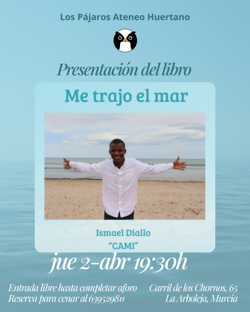 El próximo jueves 2 de abril a las 19:30 h, tenemos el inmenso placer de acoger en Los Pájaros Ateneo Huertano la presentación del primer libro de Ismael Diallo, conocido como «CAMI». «Me trajo el mar» es una invitación a sumergirnos en la vida y la sensibilidad de un soñador incansable. Nacido en Guinea Conakry […]